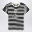 Crewneck T-shirt by FRAME x Ritz Paris in cream and navy blue striped cotton, featuring short sleeves and logo embroidery on the chest and back. Size and Fit - Model wears size S Model measurements: Height: 179 cm Chest: 82 cm Waist: 65 cm Hips: 90 cm