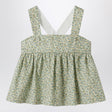 Top of Il Gufo in forest green cotton in Liberty fabric, characterized by straps fixed with crossed buttons on the back and elastic back.