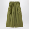 Wide-leg trousers by Il Gufo in stretch cotton poplin in fir green, featuring an elasticated waist and two flap pockets on the sides.