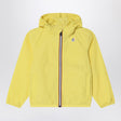 K-Way hooded jacket in water-repellent fabric yellow, characterized by long sleeves with elasticated cuffs, front zip closure, logo on the chest, and two side welt pockets.