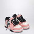 Pink, white and black leather low top sneaker by Off-White, features a lace-up fastening, a Zip Tie logo plaque, an Arrows motif, a perforated round toe, a heel with logo lettering and a rubber sole.