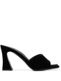 Solhene 90mm velvet-effect sandals from Giuseppe Zanotti featuring black, calf leather, velvet effect, square open toe, slip-on style, branded footbed, high block heel and leather sole. Solhene velvet mules Size and Fit - Heel 3,5 in / 9 cm