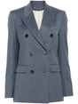 blue-grey virgin wool textured finish double-breasted button fastening peak lapels shoulder pads long sleeves buttoned cuffs chest welt pocket two side flap pockets signature two-stars appliqué hardware English rear vents full lining straight hem Journey double-breasted jacket Size and Fit - This piece fits true to size. We recommend you get your regular size. Model is 1,75m / 5ft 8in wearing size 40 (IT)