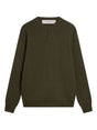 army green crew neck long sleeves ribbed trims reverse logo Logo organic cotton sweater