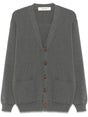 medium grey front button fastening two front patch pockets V-neck ribbed trim Cotton v-necked cardigan