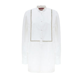 White Cotton Poplin Blouse with Gucci Crystal Decorations.