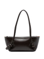 brown calf leather top handles knot detail zip fastening Fleca leather shoulder bag Size and Fit - DEPTH: 13.0 Centimetres. HEIGHT: 13.0 Centimetres. STRAP: 68.0 Centimetres. WIDTH: 25.0 Centimetres.