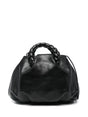 black calf leather textured finish concealed magnetic fastening two braided top handles single shoulder strap main compartment internal logo patch contrast lining trapeze body This piece comes complete with a protective dust bag. Bombon small leather handbag