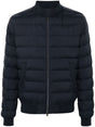 midnight blue goose down padded design baseball collar elasticated cuffs elasticated hem two side slash pockets front zip fastening L'Aviatore short down jacket