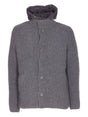 grey ribbed knit front button fastening detachable inner vest welt pockets hooded neck Wool knitted jacket