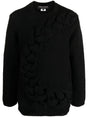 core black chunky cable knit crew neck drop shoulder long sleeves ribbed cuffs and hem Cable-knit crewneck sweater Size and Fit - This piece fits true to size. We recommend you get your regular size. Model is 1,84m / 6ft 1in wearing size M