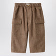 Il Gufo baby cargo trousers in cocoa-colored cotton blend, featuring elasticated waistband, faux button with zip front, and large patch pockets.
