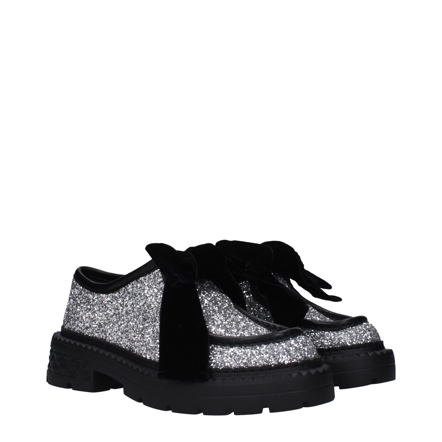 The product with MPN MARLOWMOCASSINIFQJPSILVERBLACK and code F82685 glitter in silver is a loafers designed by Jimmy Choo. It has features like front detail, side logo.