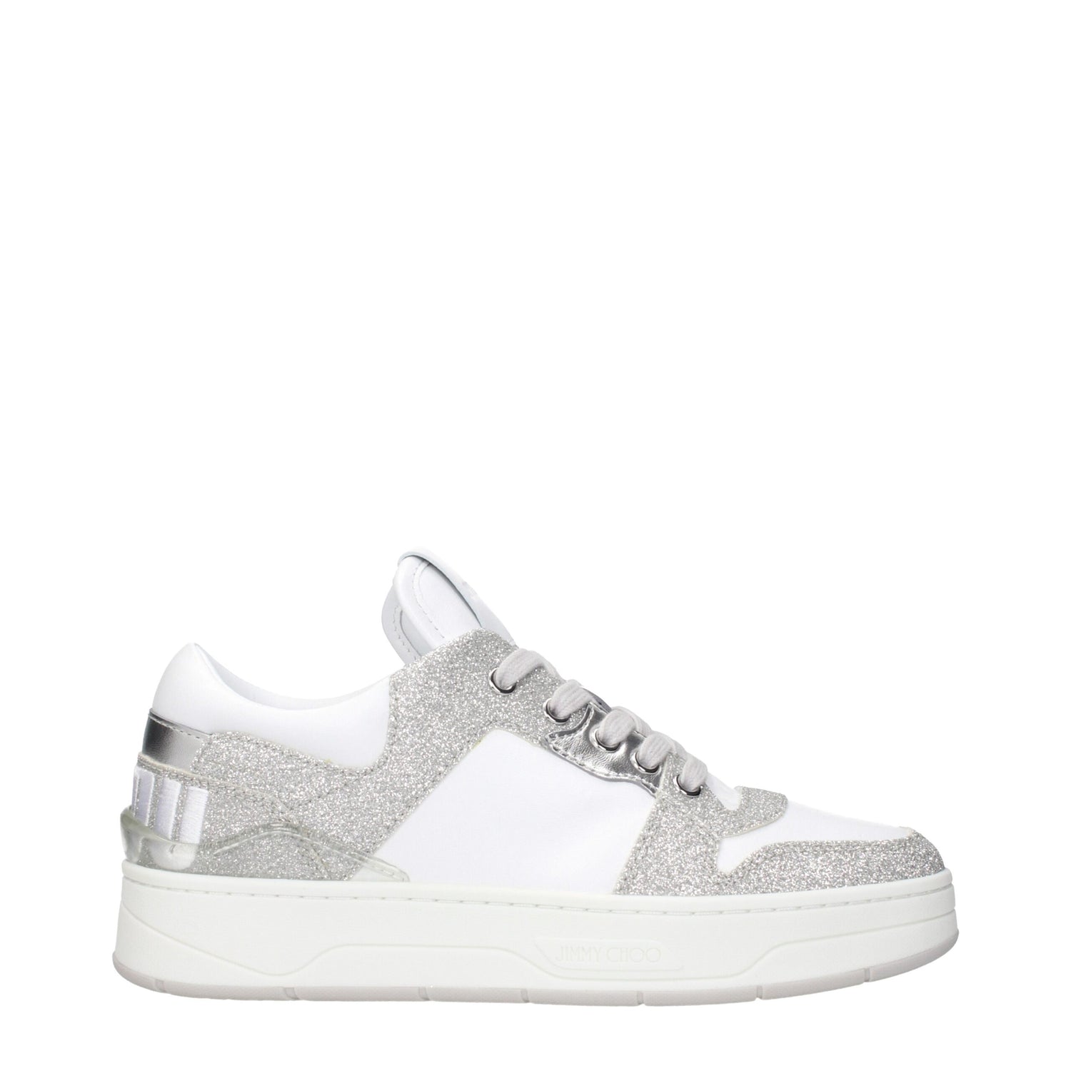 The product with MPN FLORENTFQYAXSILVERWHITE and code F85107 leather in white is a sneakers designed by Jimmy Choo. It has features like front logo, back logo.