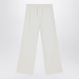 White cotton K-Way sporty flared trousers featuring a ribbed elasticated waistband with drawstring, two side welt pockets and logo patch on the front.