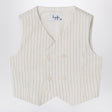Double-breasted gilet by Il Gufo in milk white cotton blend with pinstripe pattern, characterized by front buttoning, V-neck, and elastic detail on the back.
