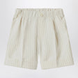 Bermuda by Il Gufo in white milk cotton blend with pinstripe pattern, characterized by an elasticized waist with a fake button, front pleats, and a cuff at the leg bottom.