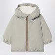 K-Way jacket made of waterproof, water-repellent, windproof, and breathable ripstop nylon in Green Oak colour, characterized by a sherpa-effect fabric lining, long sleeves, elasticized cuffs and hem, hood with elasticized edge, and zip closure.