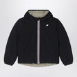 K-Way padded jacket made of waterproof, water-repellent, windproof, and breathable nylon, black on one side and Green Oak colour on the other, characterized by a reversible design, long sleeves, fixed hood, silicone logo patch on the chest, drawstring at the hem, and two side pockets.