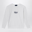 White cotton crewneck sweatshirt from Polo Ralph Lauren featuring contrasting lettering logo embroidery on the front, long sleeves and ribbed hems.