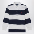 Polo by Polo Ralph Lauren in white and navy blue striped cotton, featuring long sleeves, covered buttons at the front, and logo embroidery on the chest.