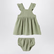 Teddy & Minou dress in sage green cotton, featuring ruffled straps, an elasticated back, and elasticated culottes.