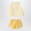 Complete two-piece set of Teddy & Minou in yellow cotton, consisting of a sleeveless crew neck tank top with buttons on the front with floral print and elasticated culottes.