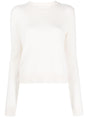 cream white cashmere fine knit crew neck long sleeves ribbed cuffs and hem Mable cashmere crewneck sweater
