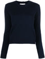 navy blue cashmere fine knit round neck long sleeves ribbed cuffs ribbed hem Mable cashmere crewneck sweater