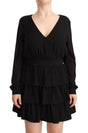 Liu Jo Black Polyester Long Sleeves V-neck Mini A-line Dress