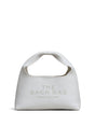 light grey leather logo print to the front logo patch to the rear single flat top handle magnetic fastening main compartment internal zip-fastening pocket The Mini Sack leather handbag