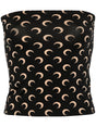black/beige recycled polyamide blend stretch-design signature Moonogram pattern strapless unlined pull-on style Moon offshoulder tube top