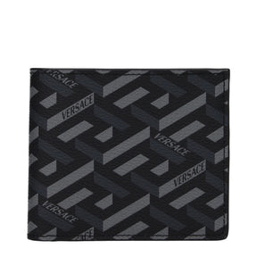 The product with MPN 10061161A014885B050 and code F85546 fabric in black is a wallets designed by Versace. It has features like logo, print which can vary.
