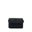 Niki Camera Shoulder Bag by Saint Laurent, front closure by magnetic flap, all-over padded and quilted chévron fabric design, embossed and matching iconic YSL brand logo plaque on front, triple interior compartment, removable and adjustable shoulder strap.