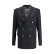 Vivienne Westwood’s Double-breasted Blazer embodies the unconventional elegance typical of the Maison, with a structured design full of character. Featuring peaked lapels and a double-breasted front button closure, it is complemented by two flap welt pockets and two back slits that lend movement to the silhouette. The metallic yarn finish adds a bold and sophisticated touch, perfect for those who like to stand out in style.