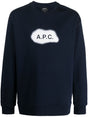 logo-print cotton sweatshirt from A.P.C. featuring midnight blue, cotton, logo print at the chest, crew neck, long sleeves and straight hem. Logo organic cotton sweatshirt Size and Fit - This piece fits true to size. We recommend you get your regular size. Model is 1,84m / 6ft 1in wearing size M