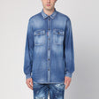 Dsquared2 shirt in blue cotton denim with a faded effect, characterized by a front button closure, long sleeves with buttoned cuffs, two chest pockets with flap and button, logo tag, and curved hem. Size and Fit - Model wears size 50 IT Model measurements: Height: 185 cm Chest: 105 cm Waist: 85 cm Hips: 100 cm
