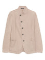 beige button fastening stand collar front patch pockets long sleeves