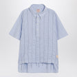 Brain Dead shirt T-shirt in collaboration with Brooks Brothers in blue checked and striped cotton, featuring button-down collar, short sleeves, half front button placket, front logo patch and curved hem. Size and Fit - Model wears size L Model measurements: Height: 189 cm Chest: 104 cm Waist: 78 cm Hips: 95 cm