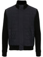 black virgin wool quilted ribbed knit panelled design high neck front press-stud and zip fastening contrasting-fabric sleeves ribbed cuffs and hem two side stud-fastening pockets straight hem full lining Nylon and wool bomber jacket Size and Fit - This piece fits true to size. We recommend you get your regular size. Model is 1,84m / 6ft 1in wearing size 48 (IT)