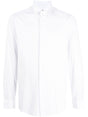 White lyocell-cotton blend jersey long-sleeve shirt from EMPORIO ARMANI featuring spread collar, front button placket, buttoned-cuff sleeves and curved hem. POSITIVELY CONSCIOUS: This Planet Conscious product contains at least 50% eco-materials, which are independently certified as or widely recognised for having a lower environmental impact.. Cotton shirt Size and Fit - This piece fits true to size. We recommend you get your regular size. Model is 1,84m / 6ft 1in wearing size M