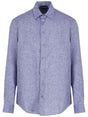 blue linen/flax mélange effect straight-point collar long sleeves buttoned cuffs front button fastening curved hem Linen shirt Size and Fit - This piece fits true to size. We recommend you get your regular size. Model is 1,84m / 6ft 1in wearing size M