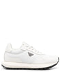 white recycled polyester/calf leather panelled design silver-tone logo plaque logo patch at the tongue round toe front lace-up fastening branded insole EVA midsole ridged rubber sole Logo sneakers Size and Fit - Heel 1,4 in / 3,5 cm; Platform 0,4 in / 1 cm