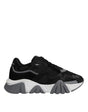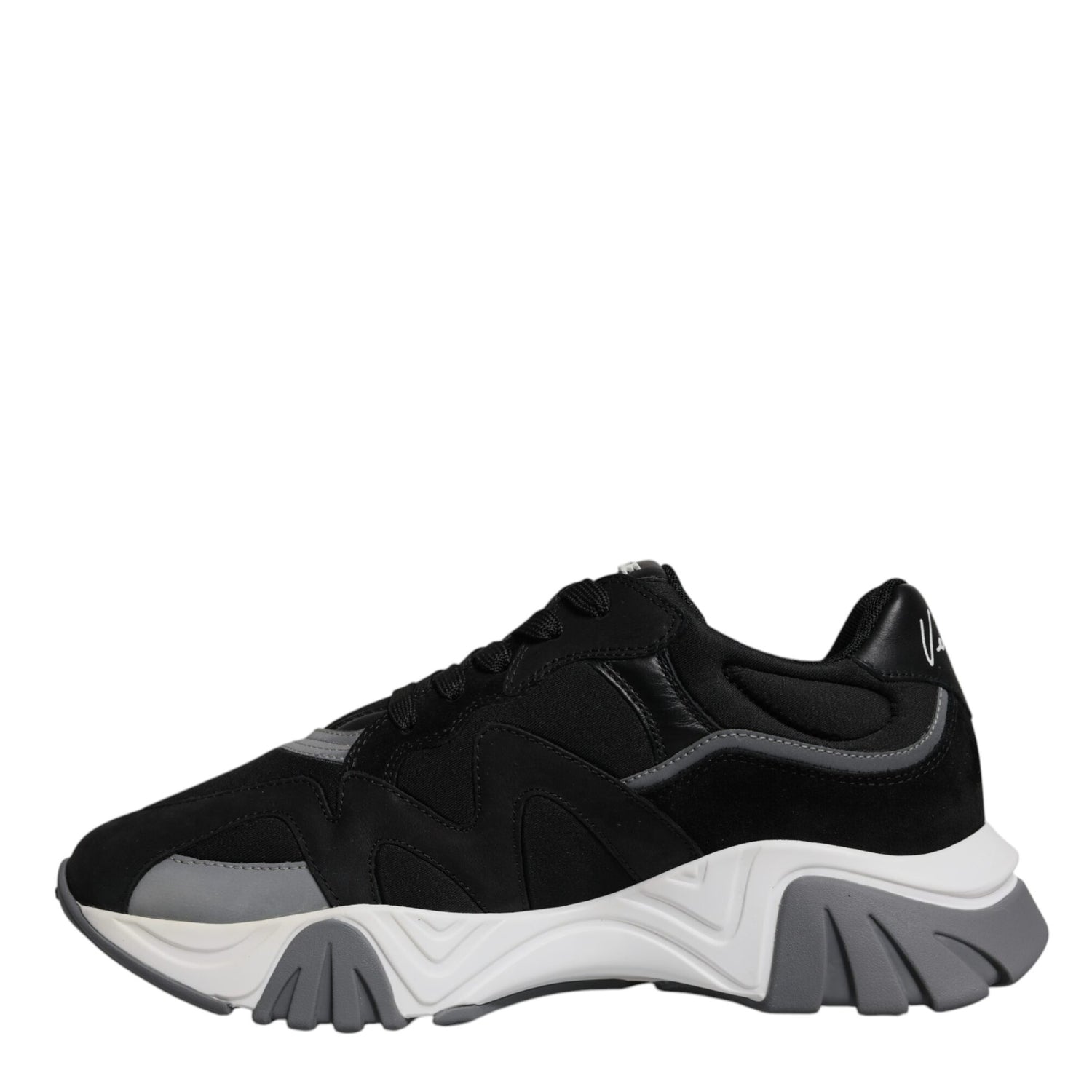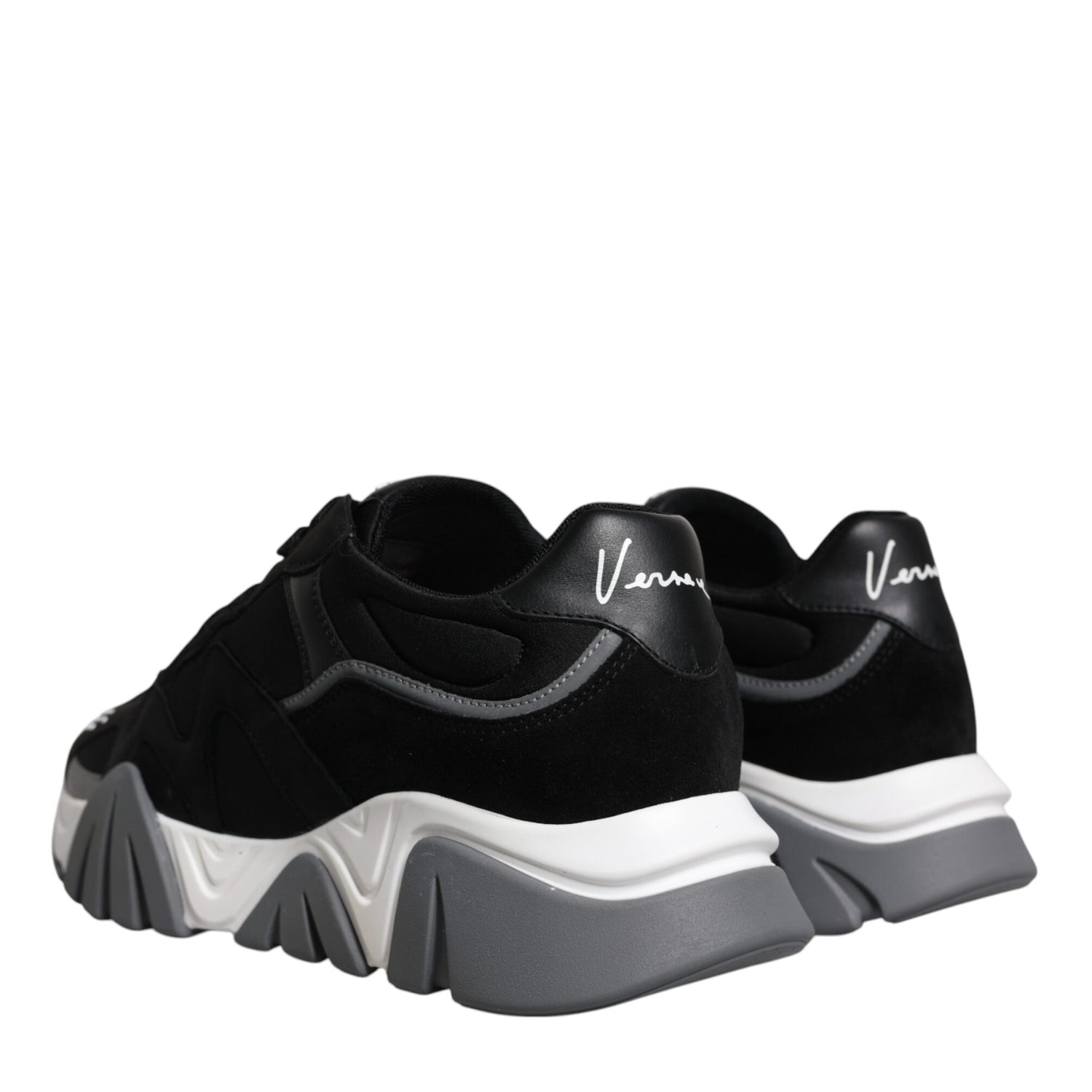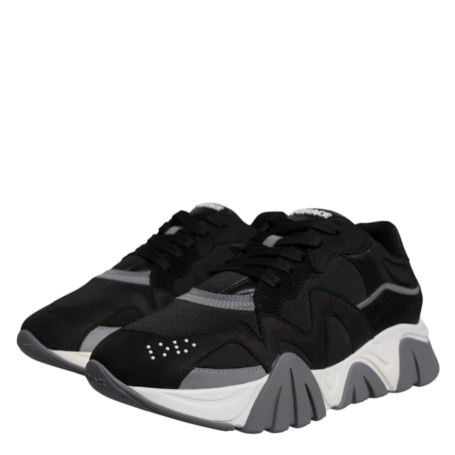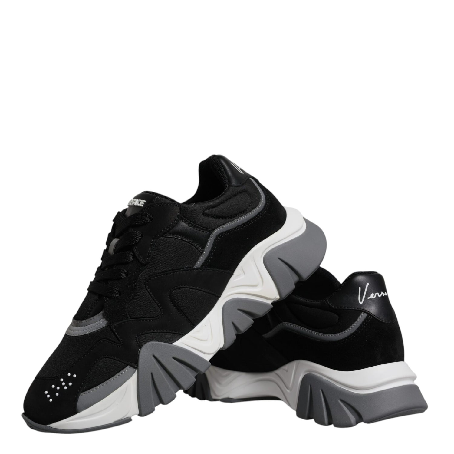 Versace Black Leather Neoprene Chunky Low Top Sneakers Squalo Shoes