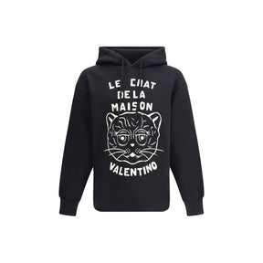 Valentino’s Le Chat De La Maison Hoodie is a casual piece with a distinctive, modern character. The adjustable drawstring hood and ribbed hems on the cuffs and hem offer comfort and functionality. The contrasting Le Chat De La Maison print on the front adds a graphic and unique touch, signing the look with Valentino’s unmistakable elegance. Perfect for a sophisticated take on casual style.