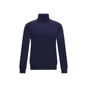 Turtleneck Sweater in virgin wool by Valentino, with a soft high collar that can be turned up at will. The ribbed cuffs and hem ensure a snug and comfortable fit. The front is enriched by the iconic tone-on-tone embroidered logo, for a touch of discreet elegance.