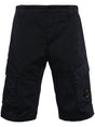 navy blue stretch-cotton belt loops at the waist two side slash pockets two side cargo pockets signature Lens detail two rear welt pockets mini logo tag to the rear internal logo tag thigh-length front button and zip fastening Cotton cargo shorts Size and Fit - This piece fits true to size. We recommend you get your regular size. Model is 1,84m / 6ft 1in wearing size 48 (IT)