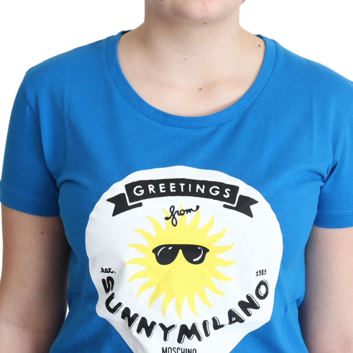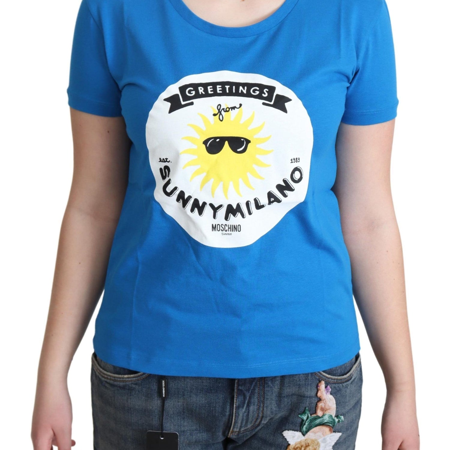 Gorgeous brand new with tags, 100% Authentic Moschino basic tees with sunny milano print crafted from pure cotton features a round neck and short sleeves.