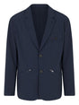 navy blue textured weave two button fastening patch pocket zip detail pockets notched lapel Single-breasted blazer jacket