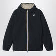 K-Way padded jacket made of waterproof, water-repellent, windproof, and breathable nylon, black on one side and Green Oak colour on the other, characterized by a reversible design, long sleeves, fixed hood, silicone logo patch on the chest, drawstring at the hem, and two side pockets.